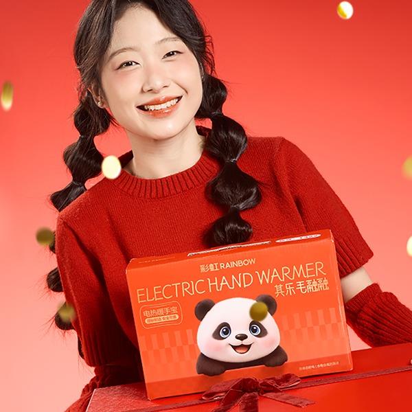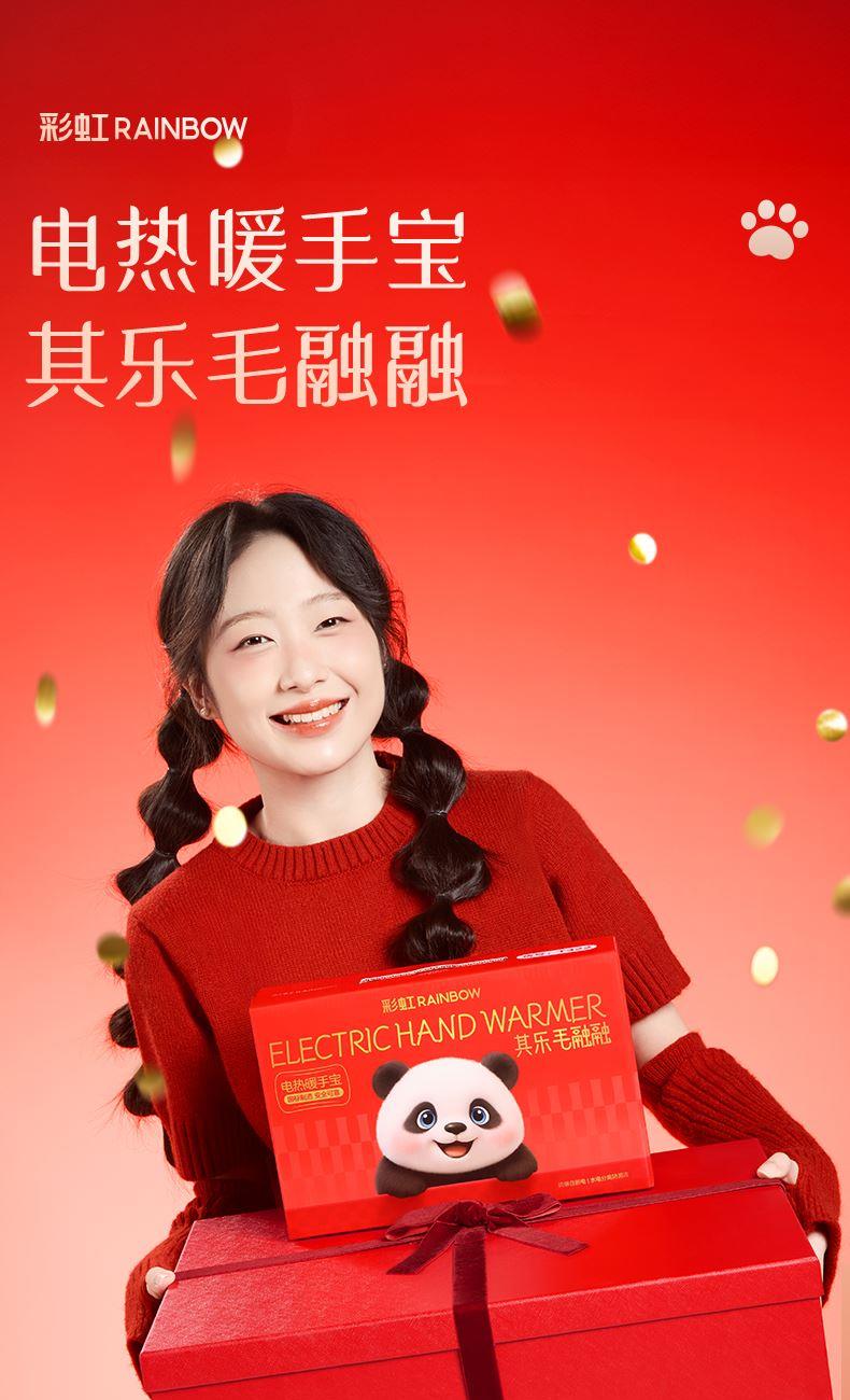 彩虹T616熊貓可拆洗加厚親膚絨插手電熱暖手寶 禮品已成功加入PPT!