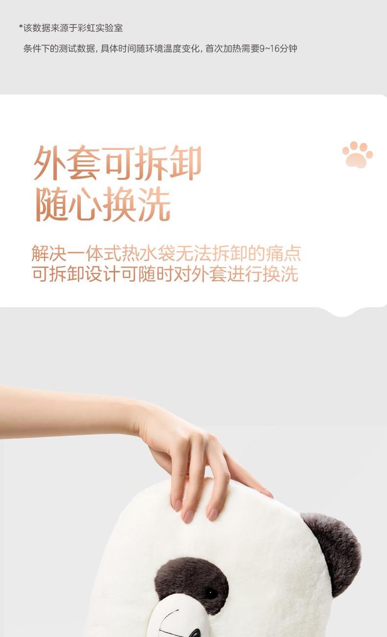 彩虹T616熊貓可拆洗加厚親膚絨插手電熱暖手寶