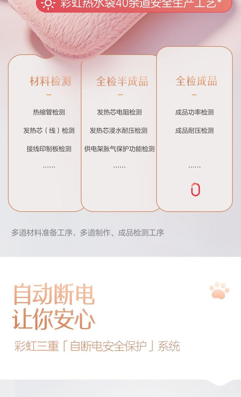 賣點 型號:DR40-1 B 功率:430W 功能:可拆洗、防爆、防觸電、防漏液、水電隔離,自動控溫限溫 面料:優(yōu)質加厚親膚絨 包裝:彩盒 參數 1、優(yōu)質加厚親膚絨 2、七重安全保護 3、防爆、防觸電、防漏液 4、水電隔離,自動控溫限溫! 5、禮品屬性,包裝精美 6、立體熊貓造型 7、面料可拆洗