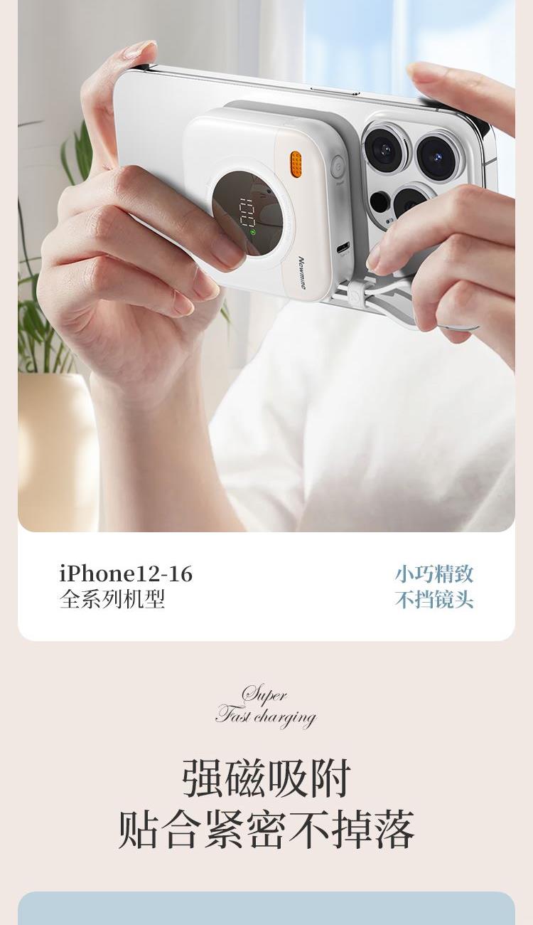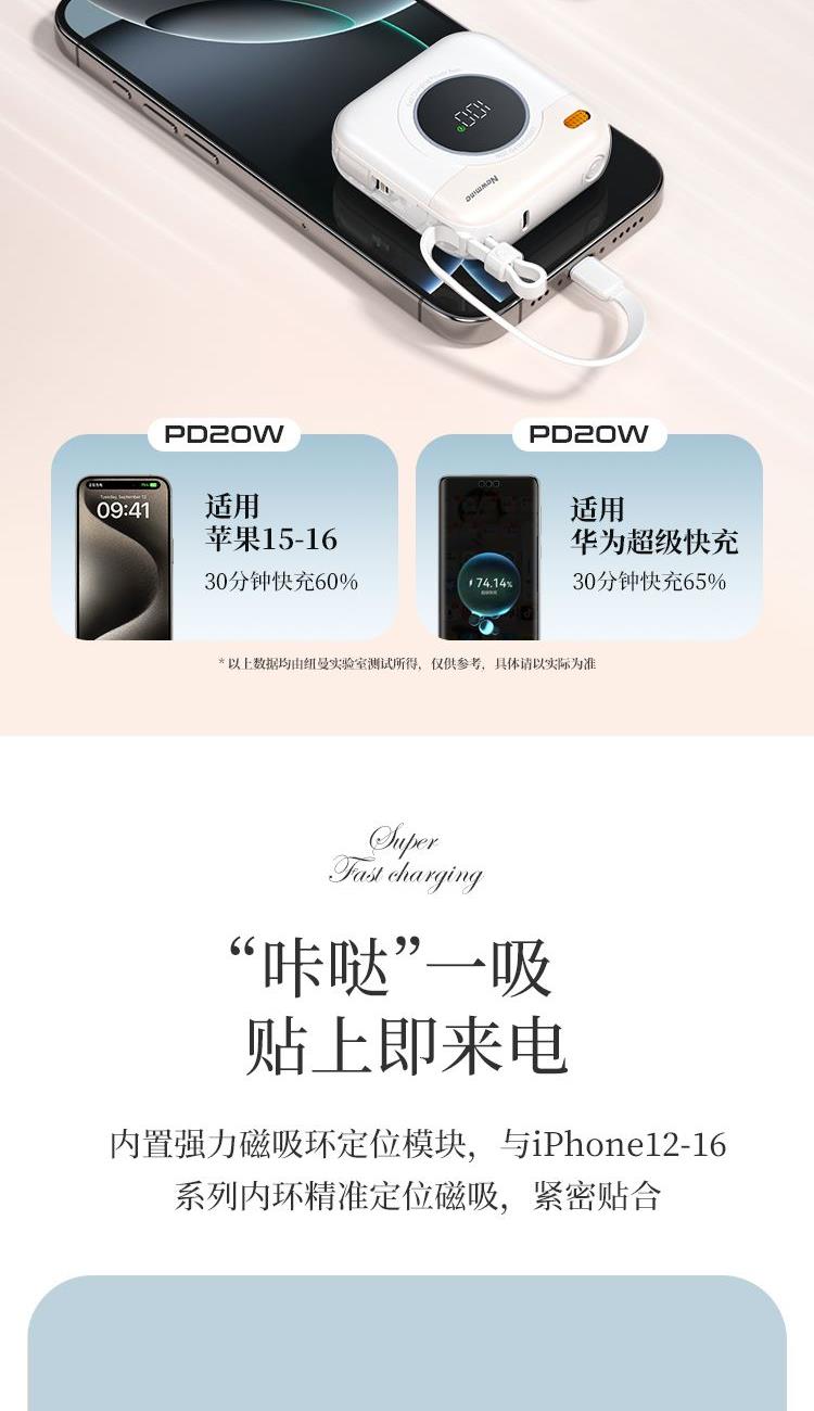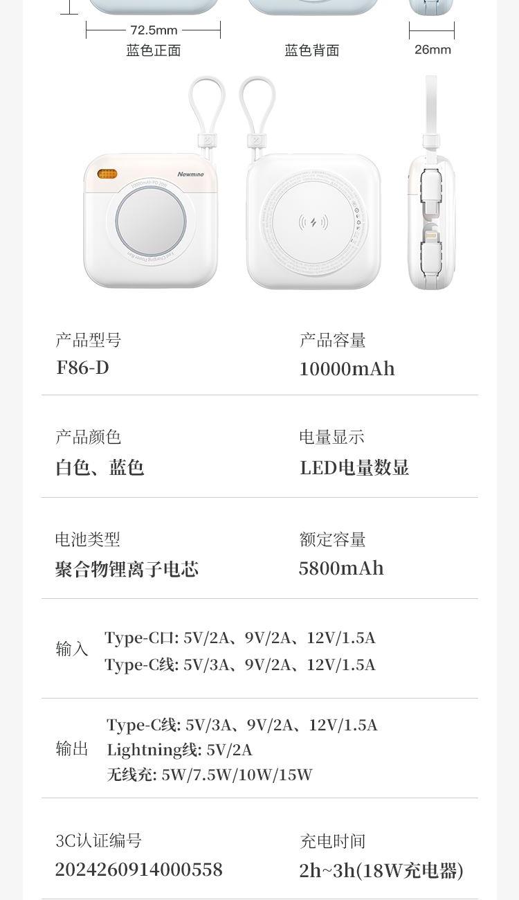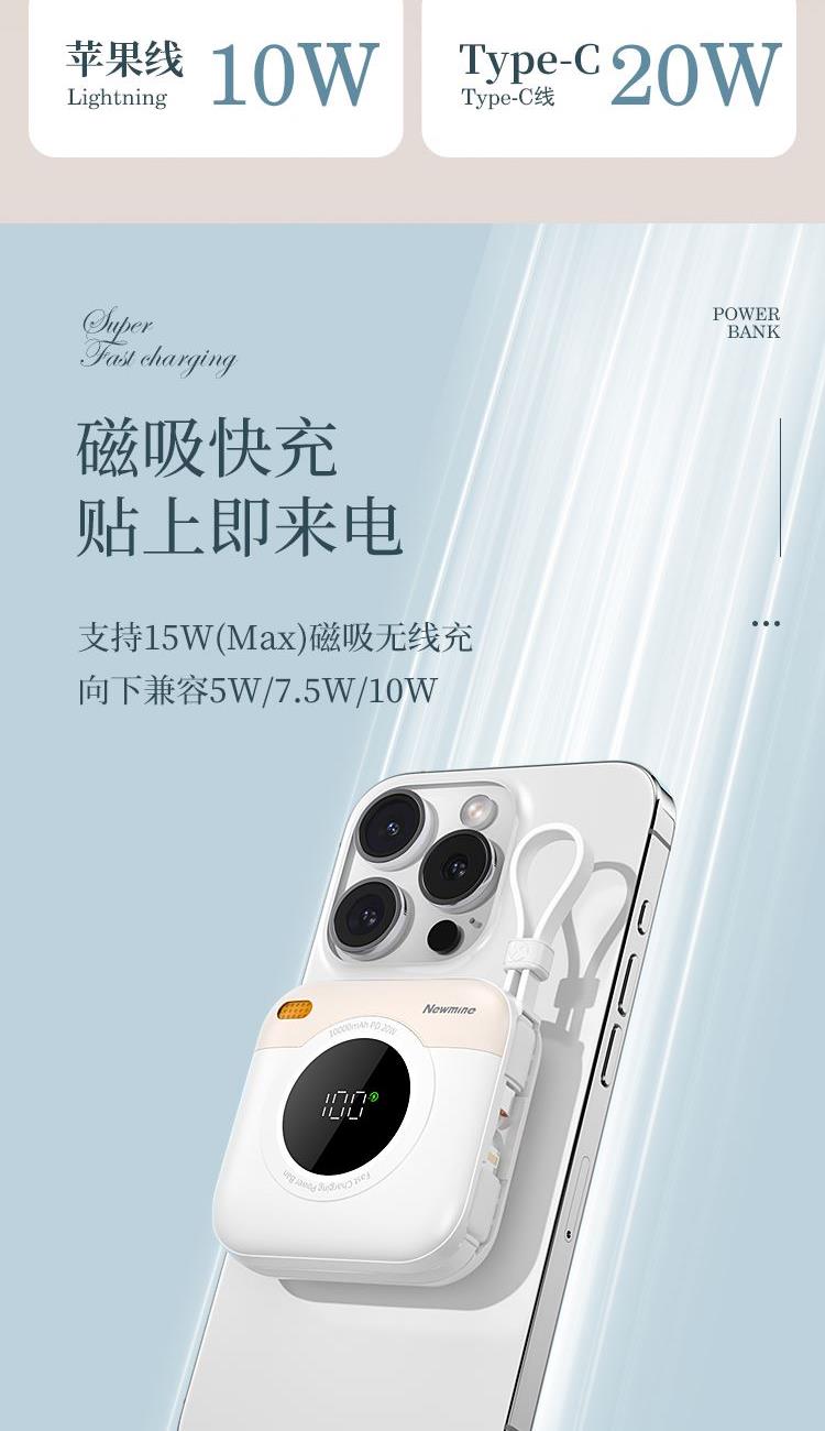 紐曼自帶先磁吸二合一一萬毫安充電寶F86-D可上飛機(jī)3C