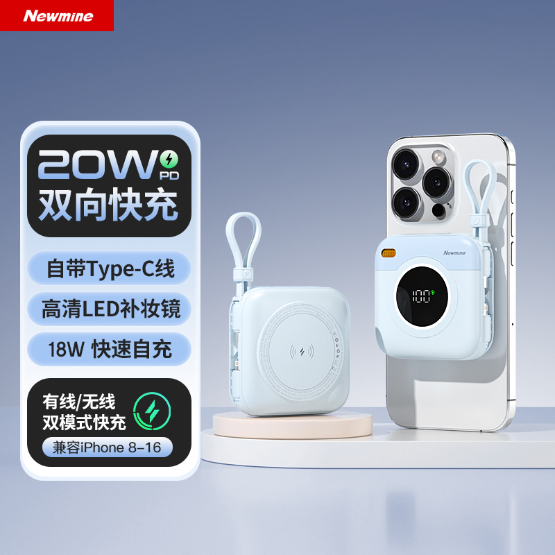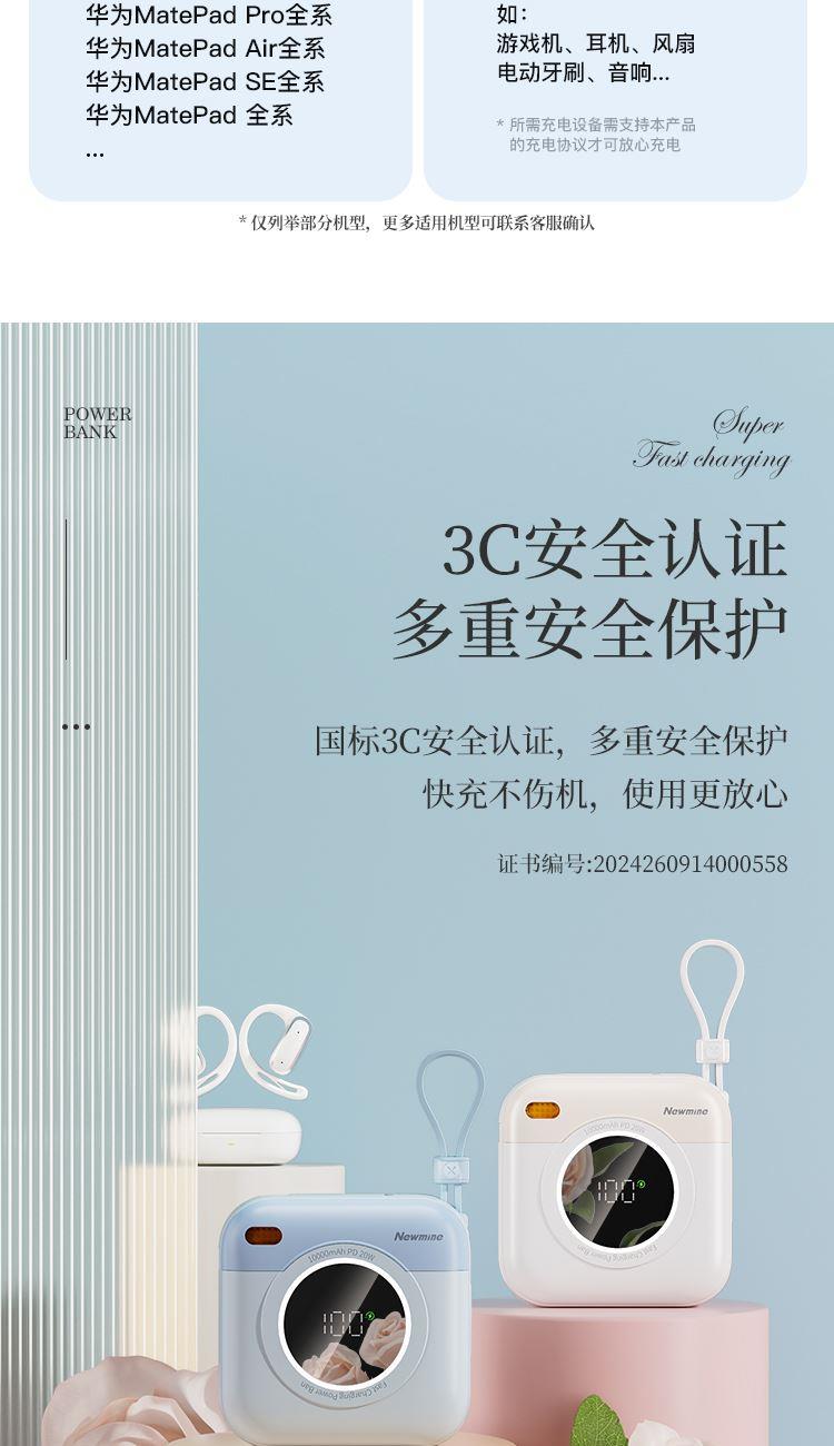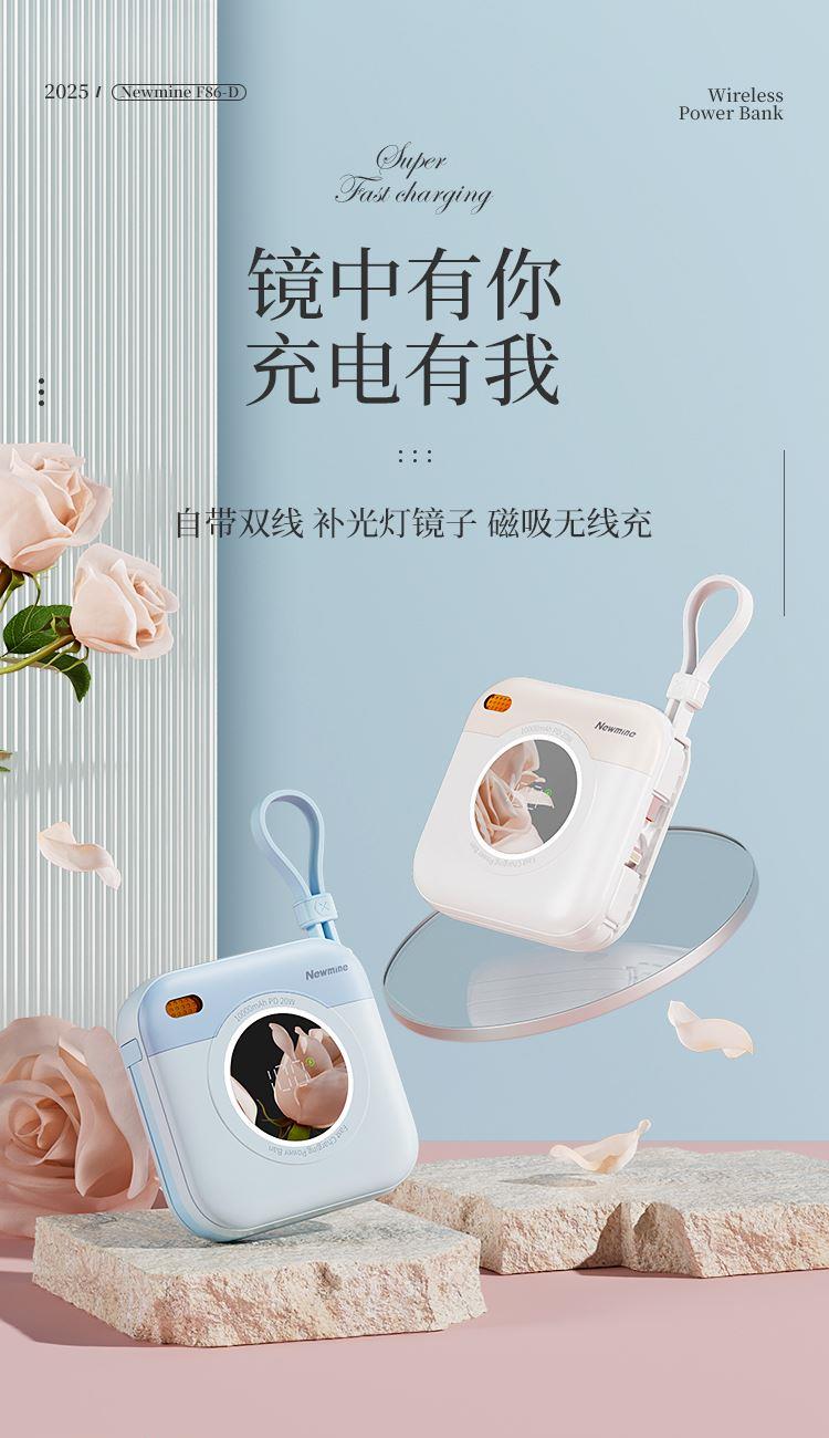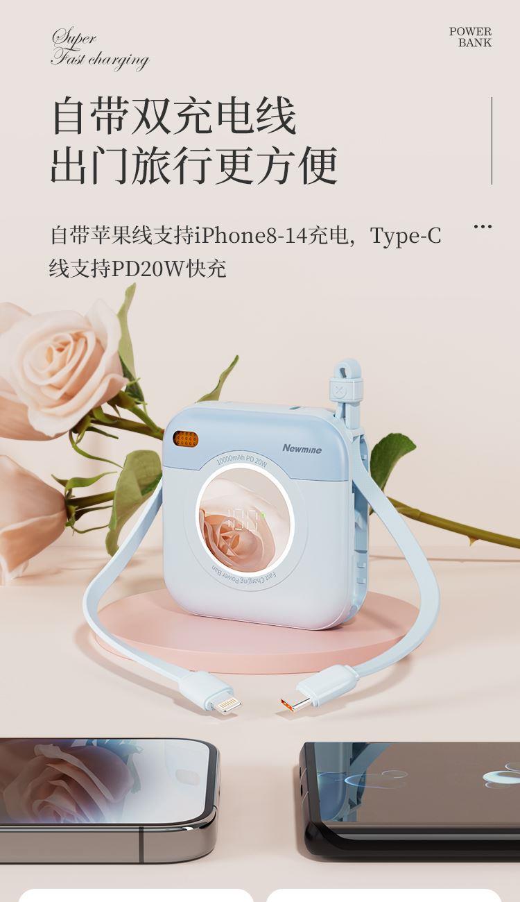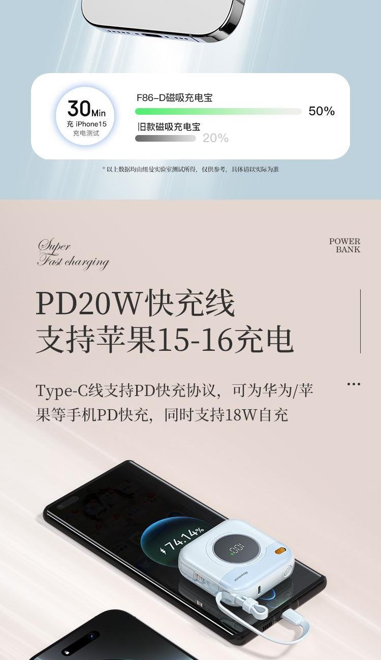 紐曼自帶先磁吸二合一一萬毫安充電寶F86-D可上飛機(jī)3C