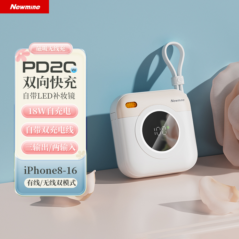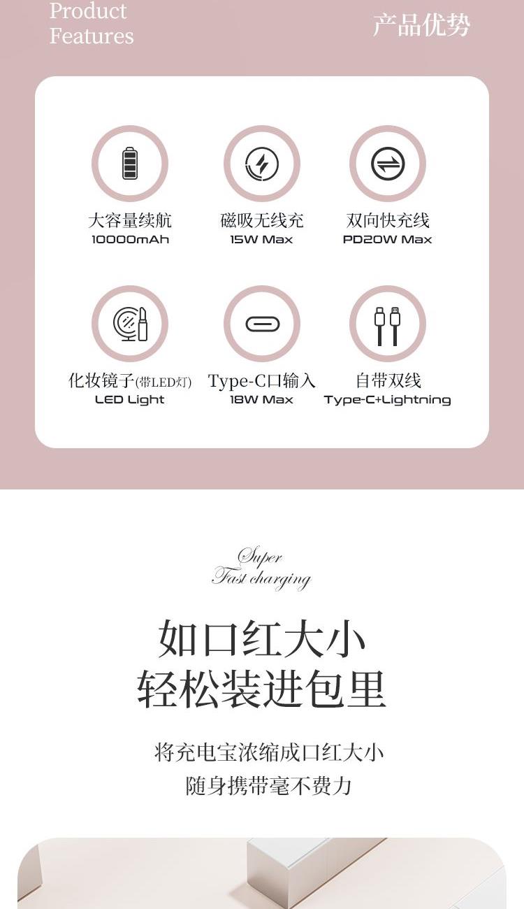 磁吸無線充,1萬毫安,22.5W快充,數(shù)顯。正面還帶小鏡子。