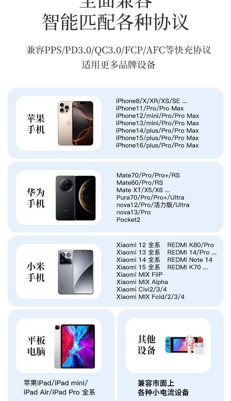 自帶雙線(Type-c線雙向快充,蘋果線),