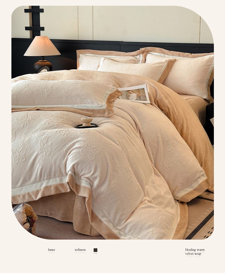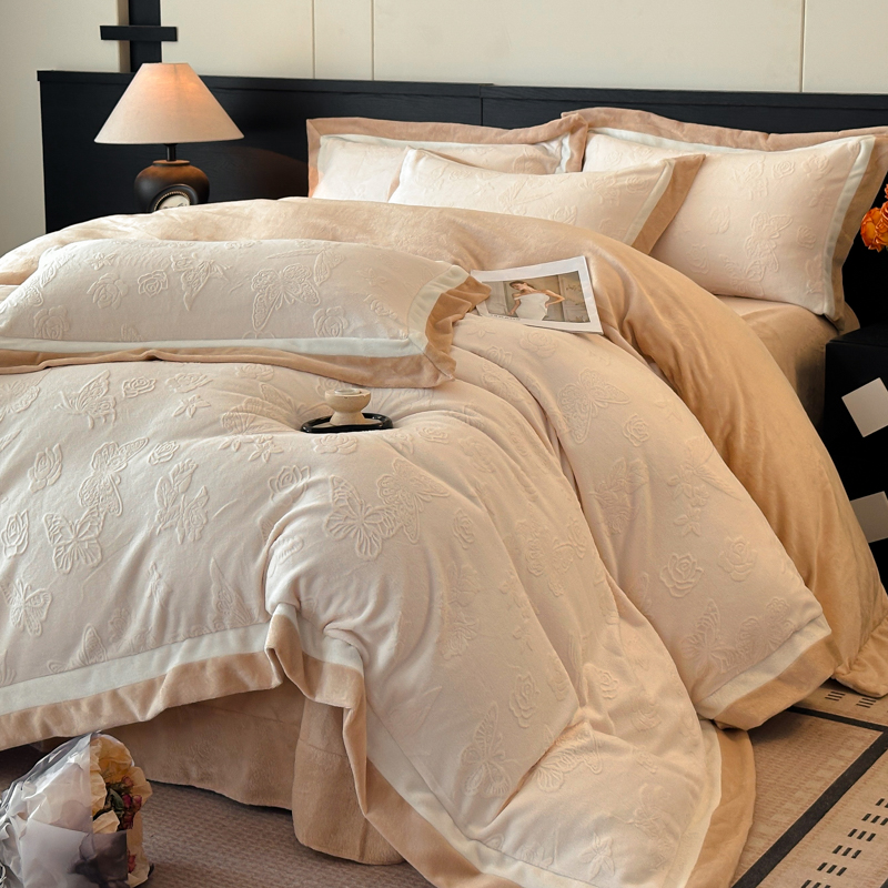 百麗安娜牛奶絨全消光工藝輕奢四件套-卡其
