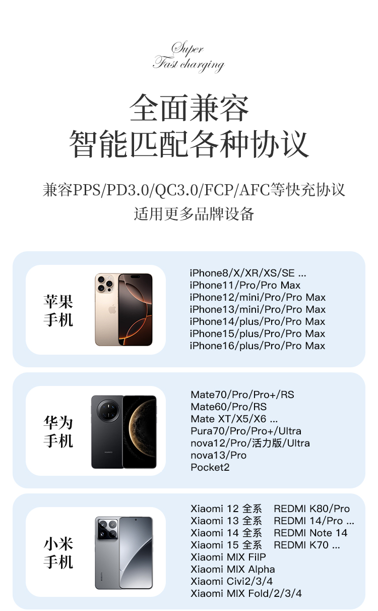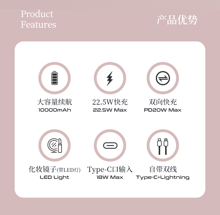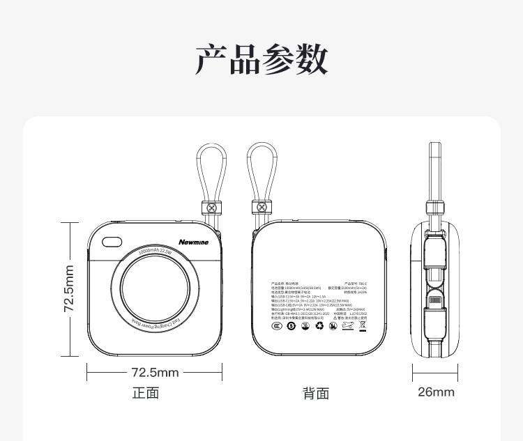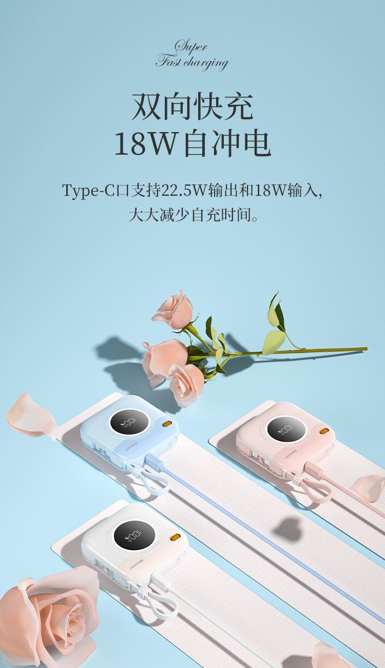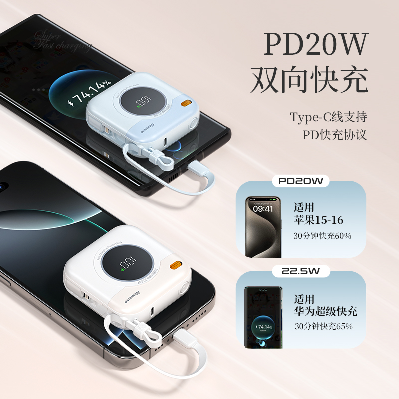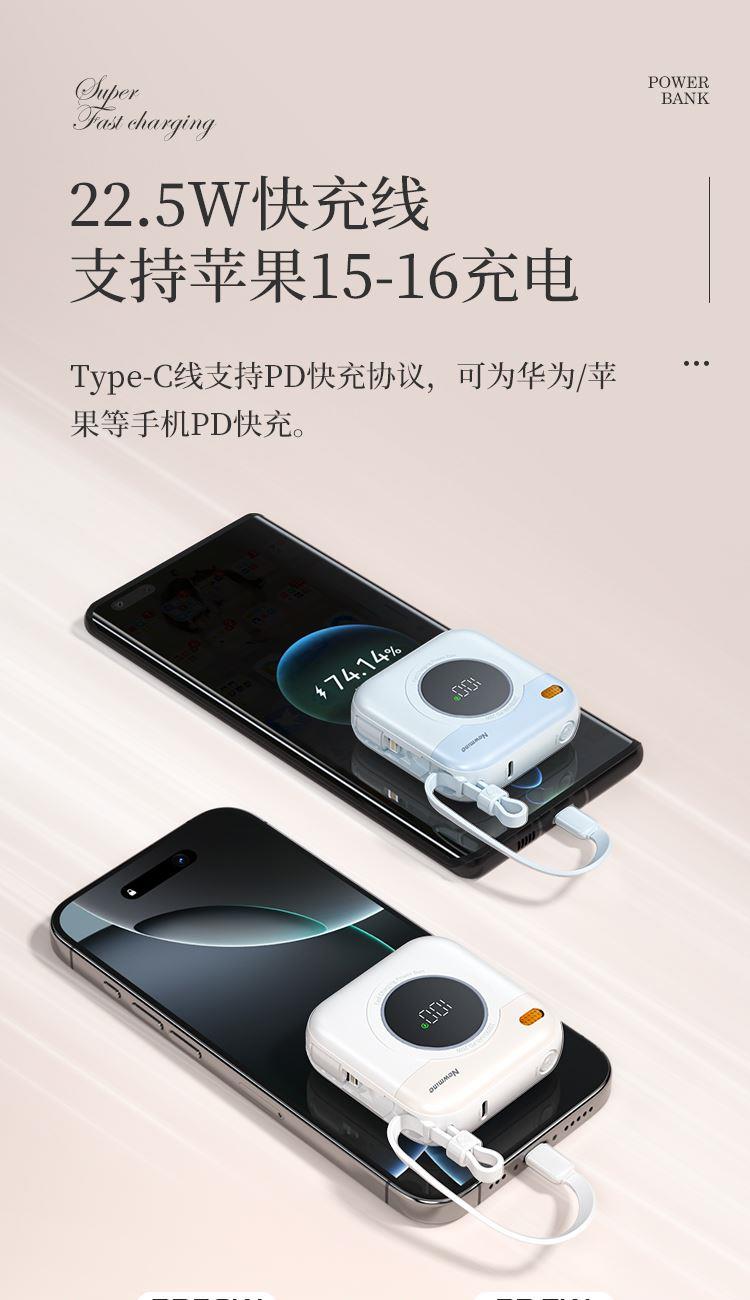 自帶雙線(Type-c線雙向快充,蘋果線),1萬毫安,22.5W快充,數(shù)顯。